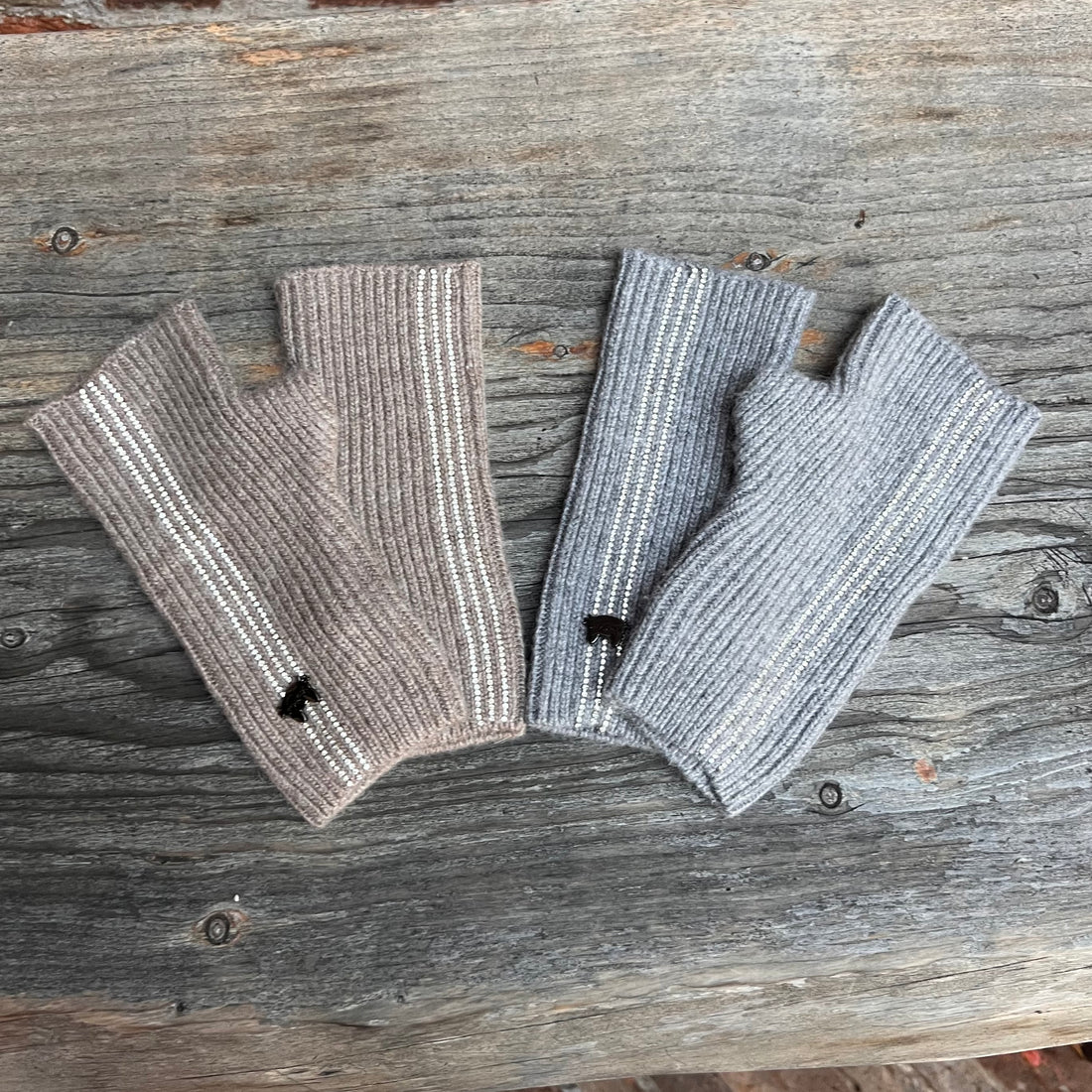 Guanti a manicotto con 8% di angora e 3 strisce di strass disponibili Fango e...