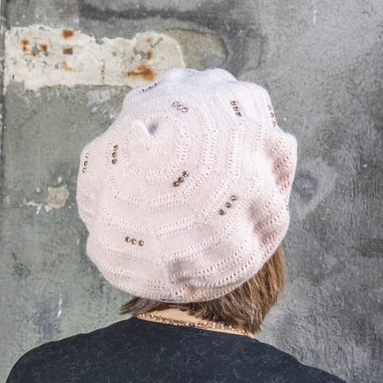 Basco in viscosa con 8% angora con motivo a treccia e strass in tinta disponibile...