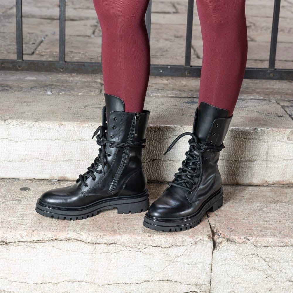 Stivale anfibio con lacci regolabili e full zip per calzarlo con facilità, realizzato in morbido...