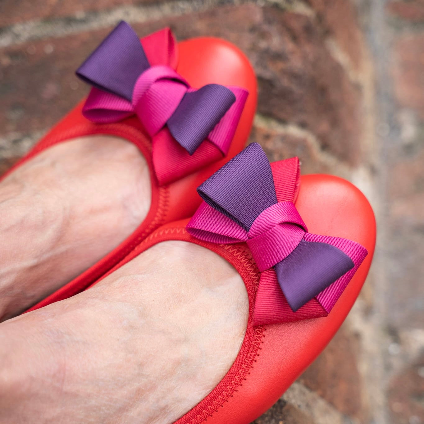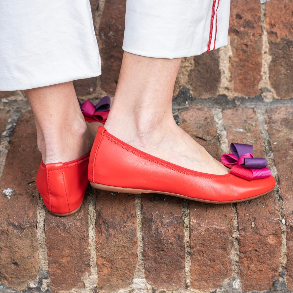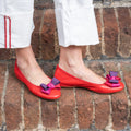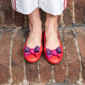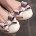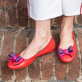 Bellet in morbidissima pelle sfoderata nappa con fiocco in gros-grain disponibile: Beige fiocco degradé e Rosso fiocco degradé