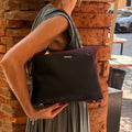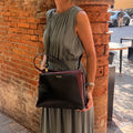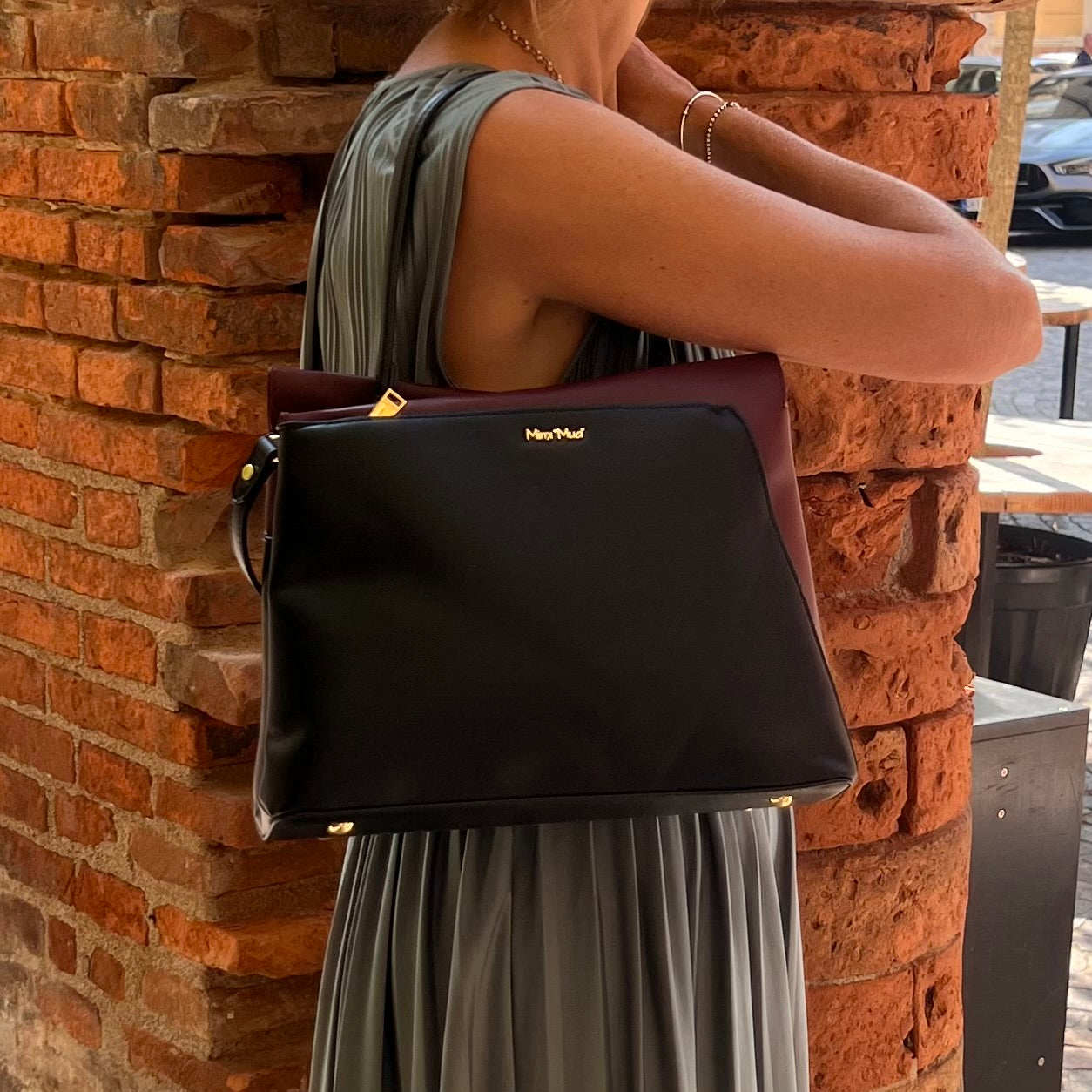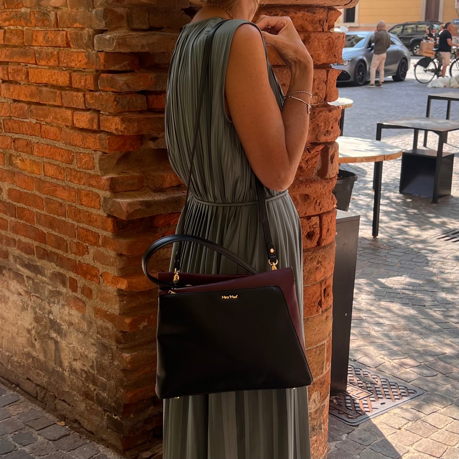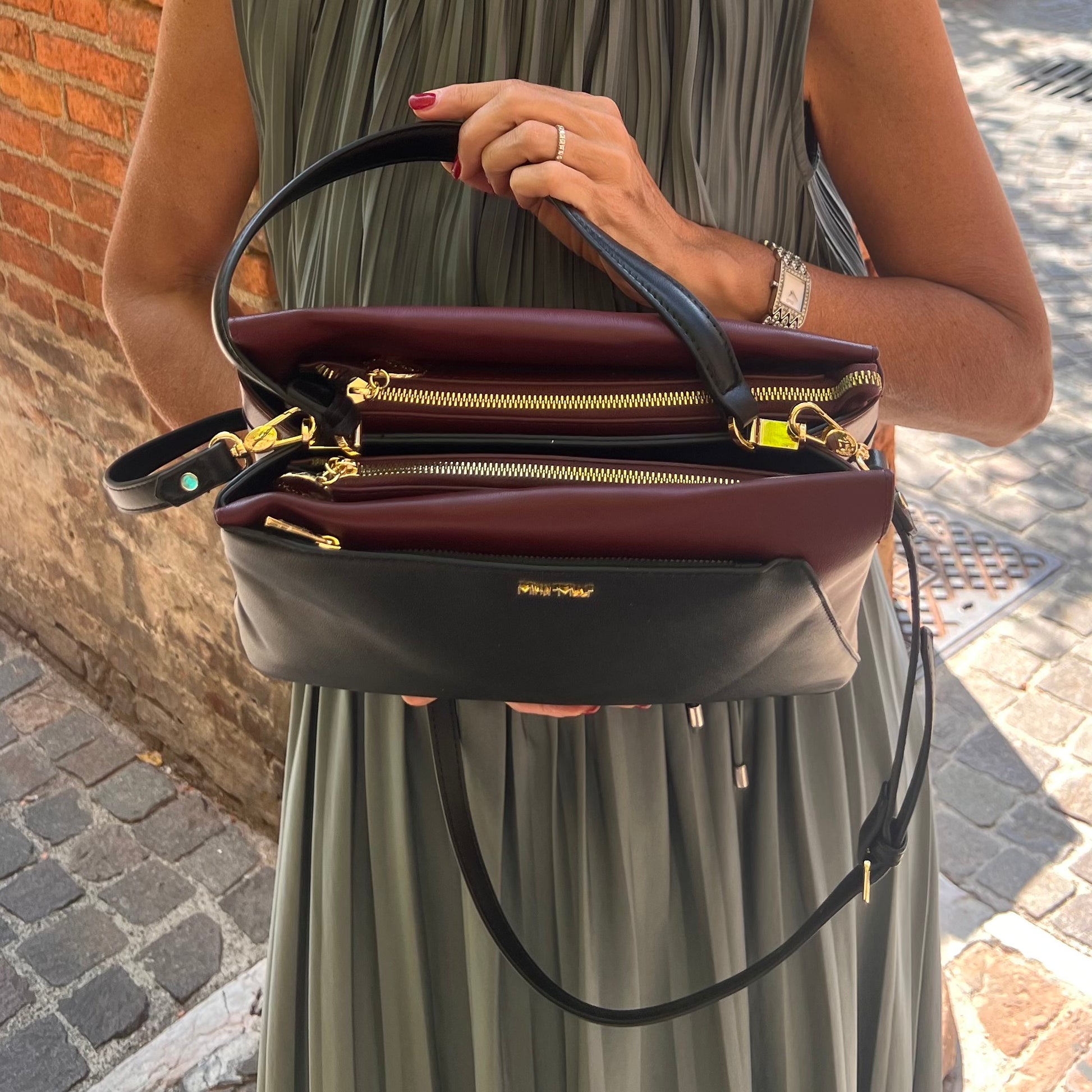 Borsa a spalla multiscomparti con tracolla regolabile e staccabile bicolore nero+bordeaux