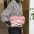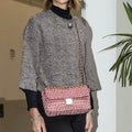 Borsa in tessuto bouclé con catenella per portarla a spalla o tracolla, con patta e zip interna e tasca posteriore