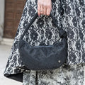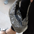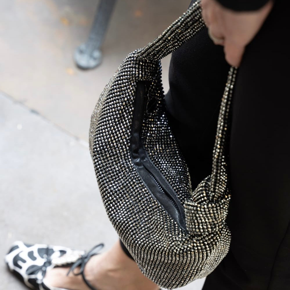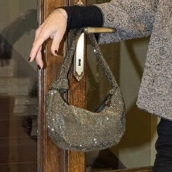 Borsa a mano con dettaglio nodo e interamente ricoperta di strass disponibile Nera e Grigio