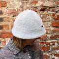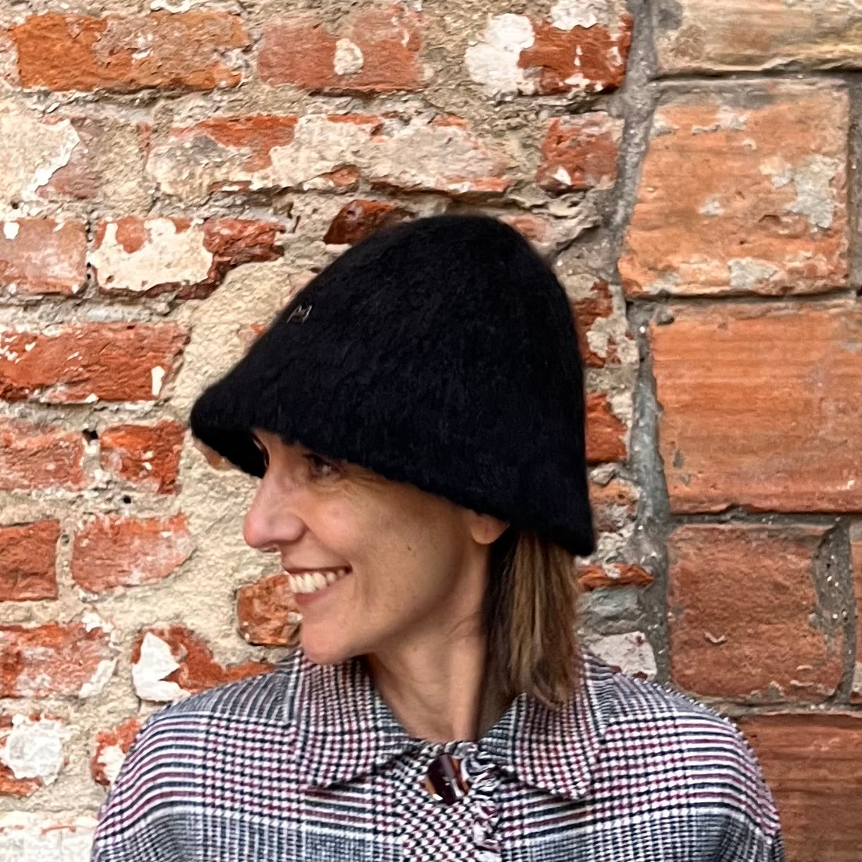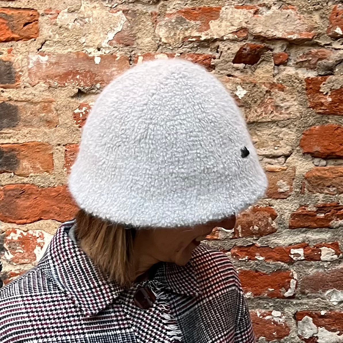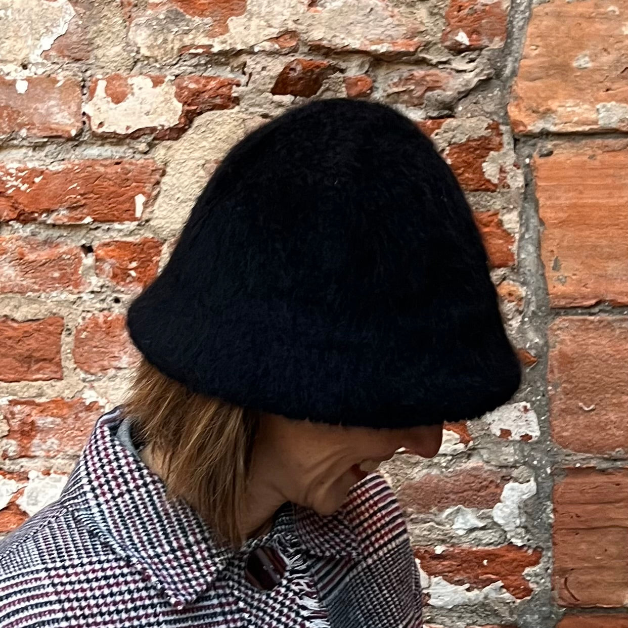 Cuffia a cloche con 30% di angora effetto teddy, morbida e calda, con nastino interno per regolare la circonferenza disponibile Nera e Grigia