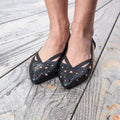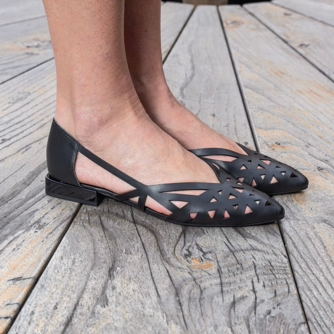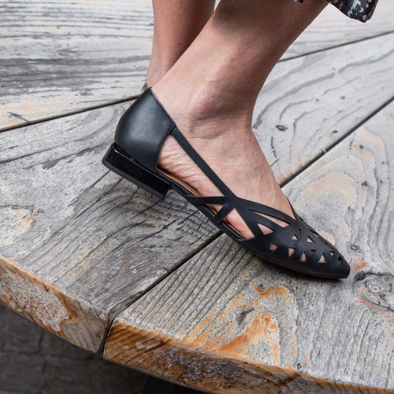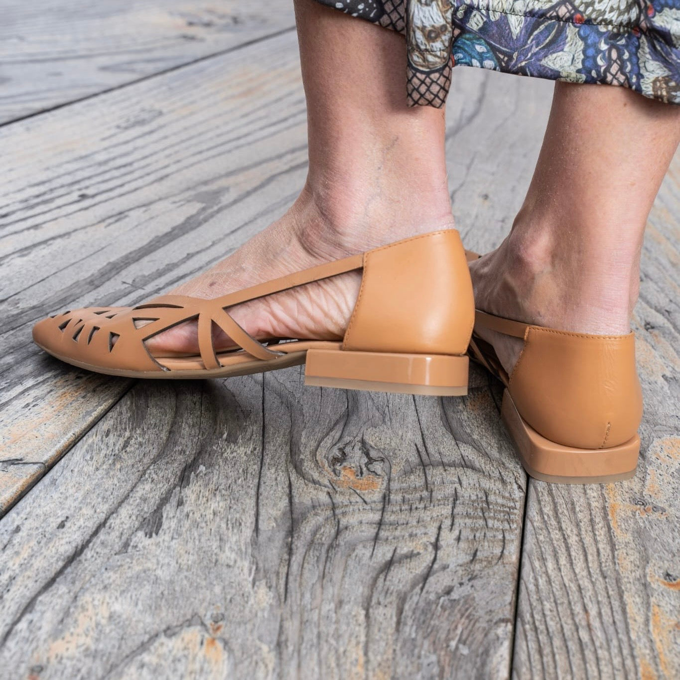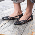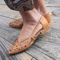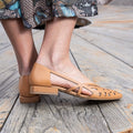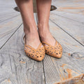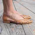 Décolleté in pelle laserata traforata con forma sfilata disponibile Cuoio e Nero