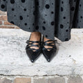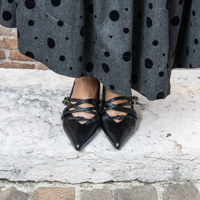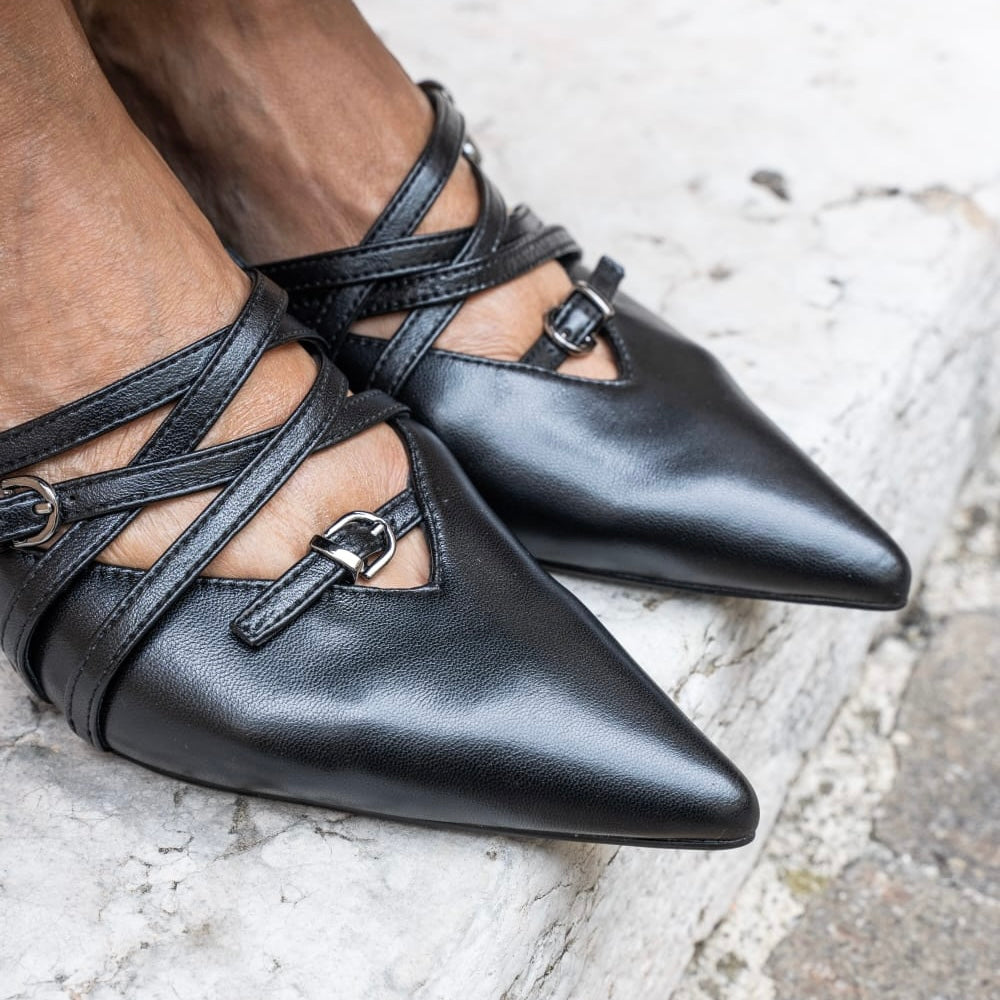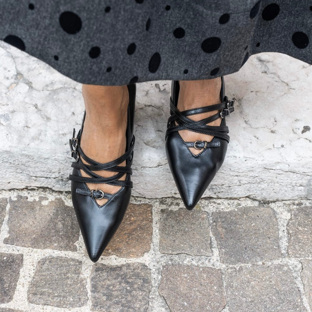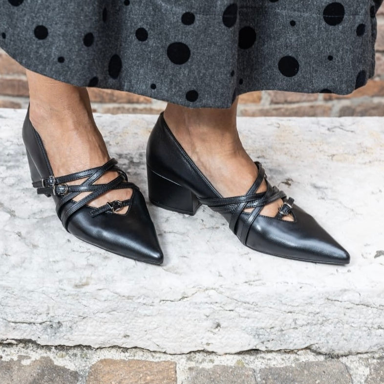 Décolleté grintoso per svoltare i nostri look con multi-listini sulla tomaia realizzato in nappa nera