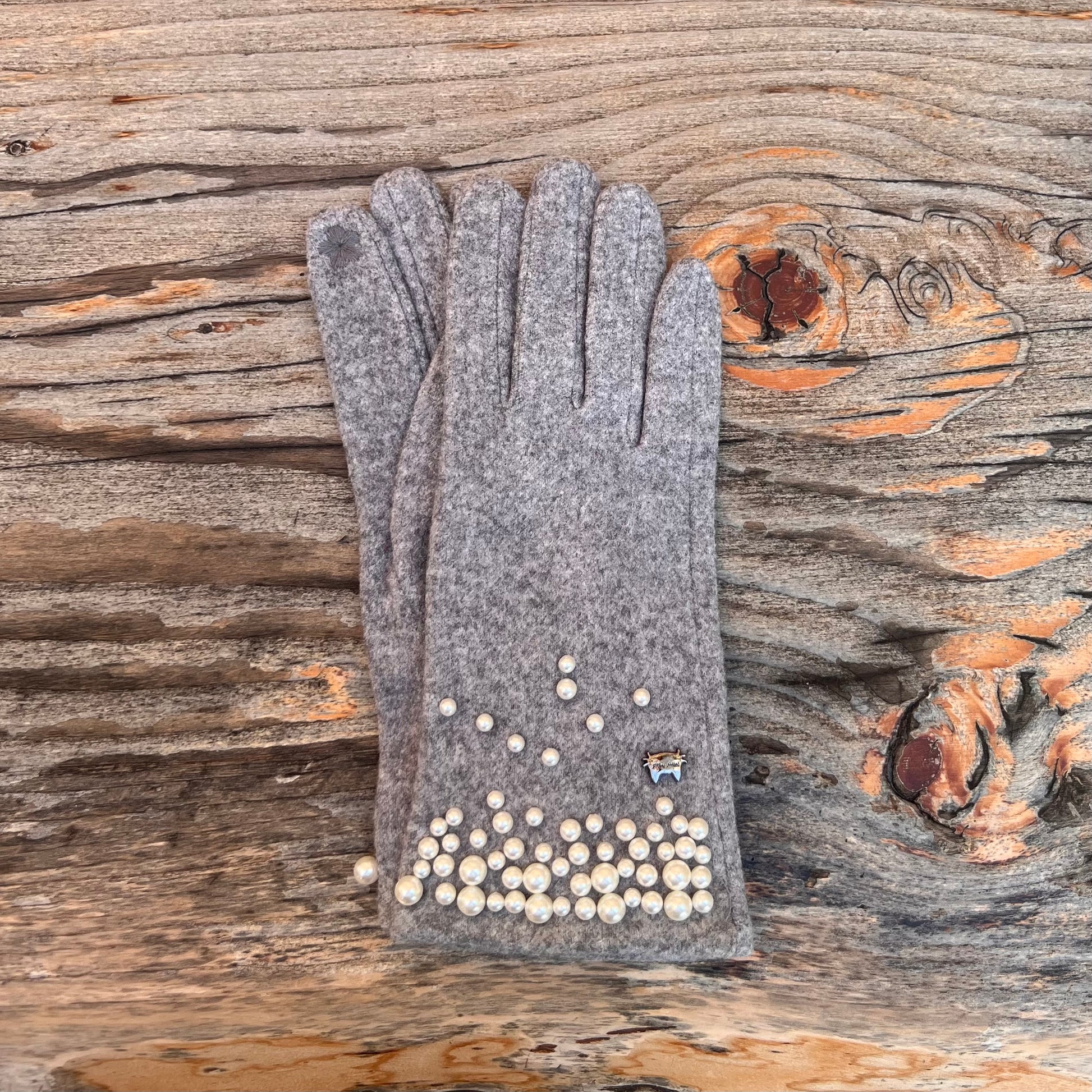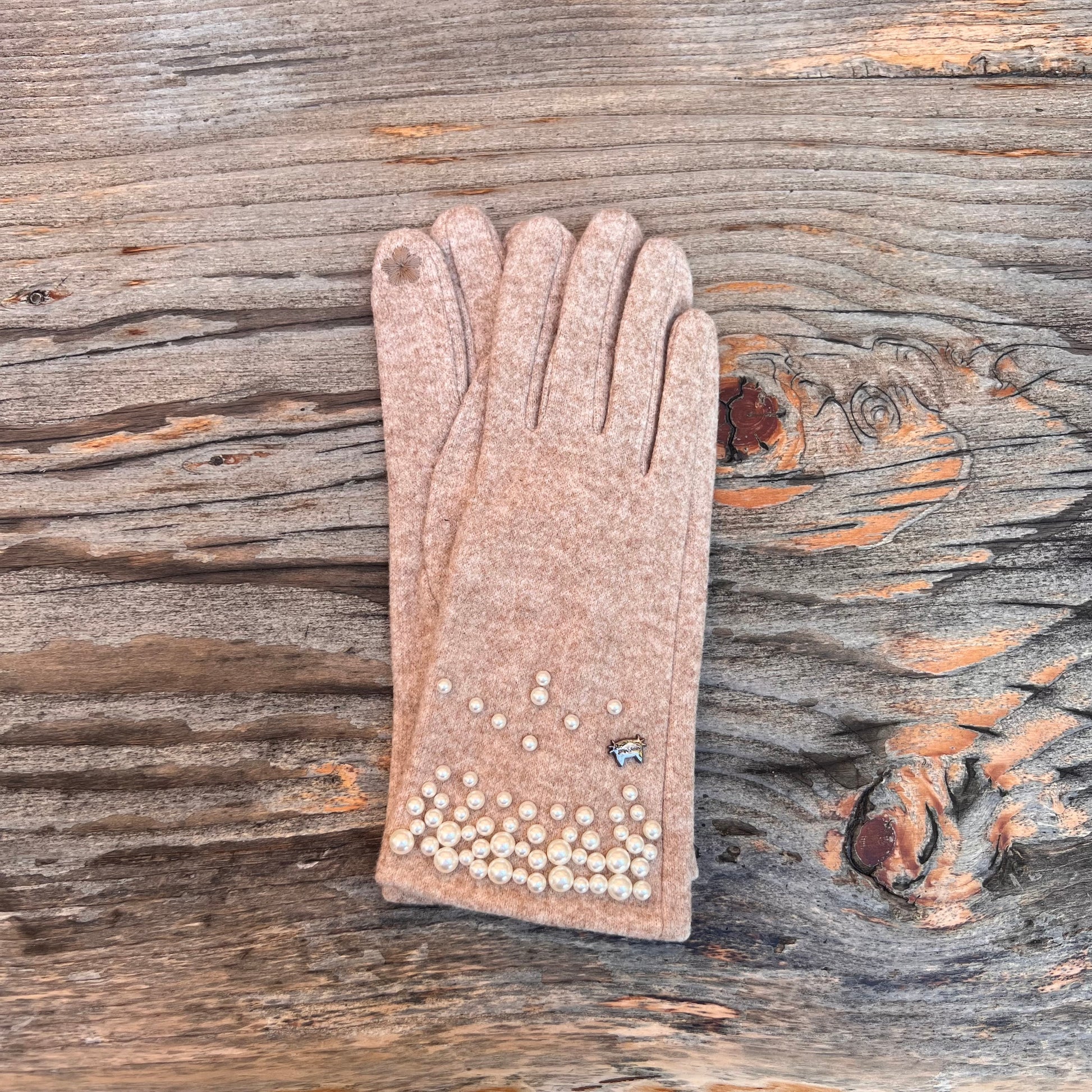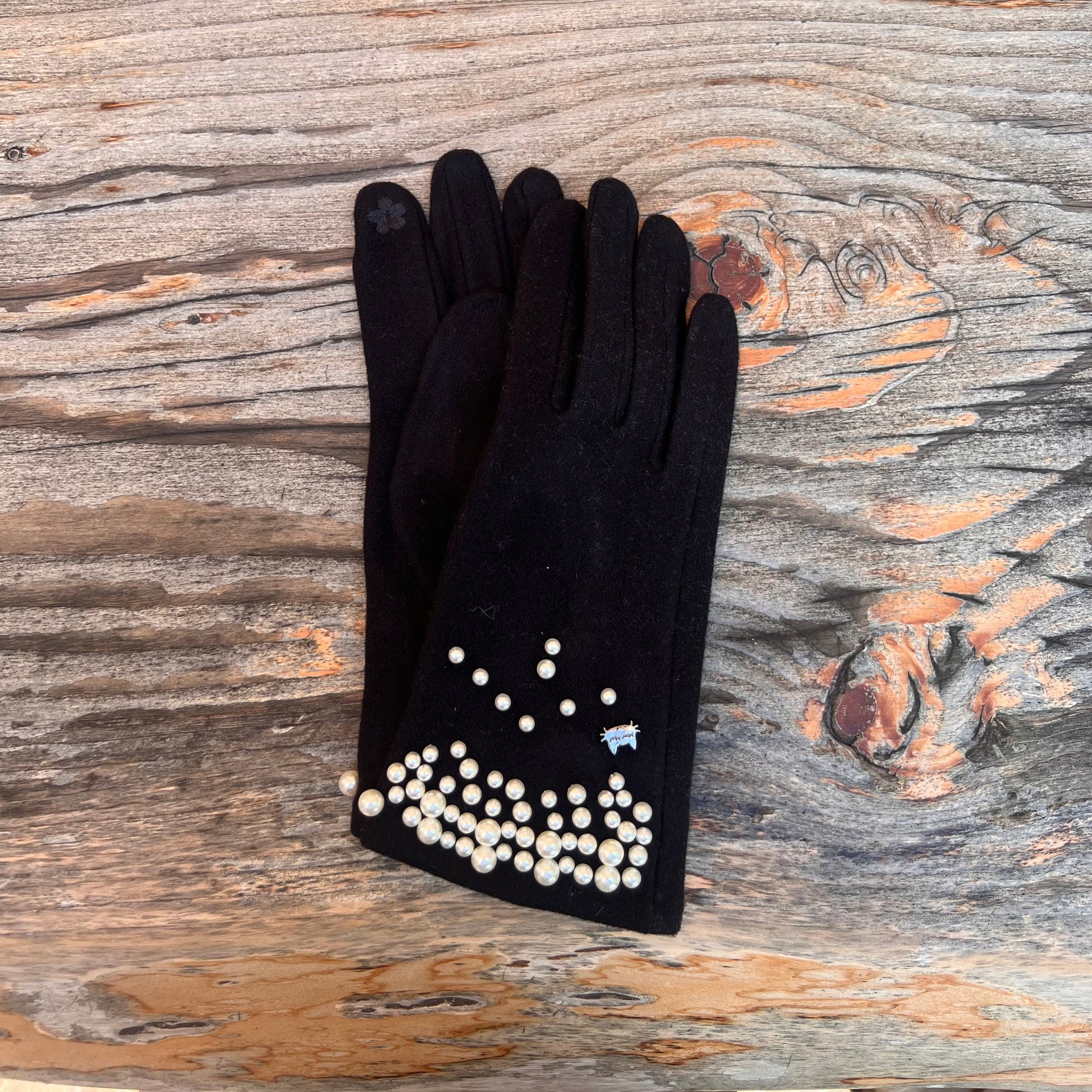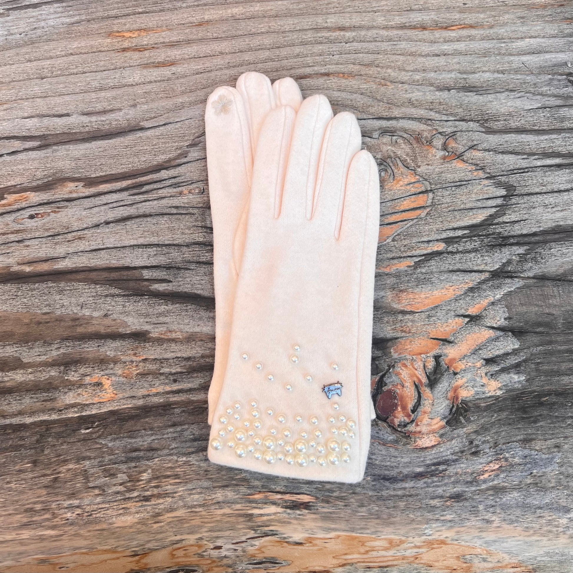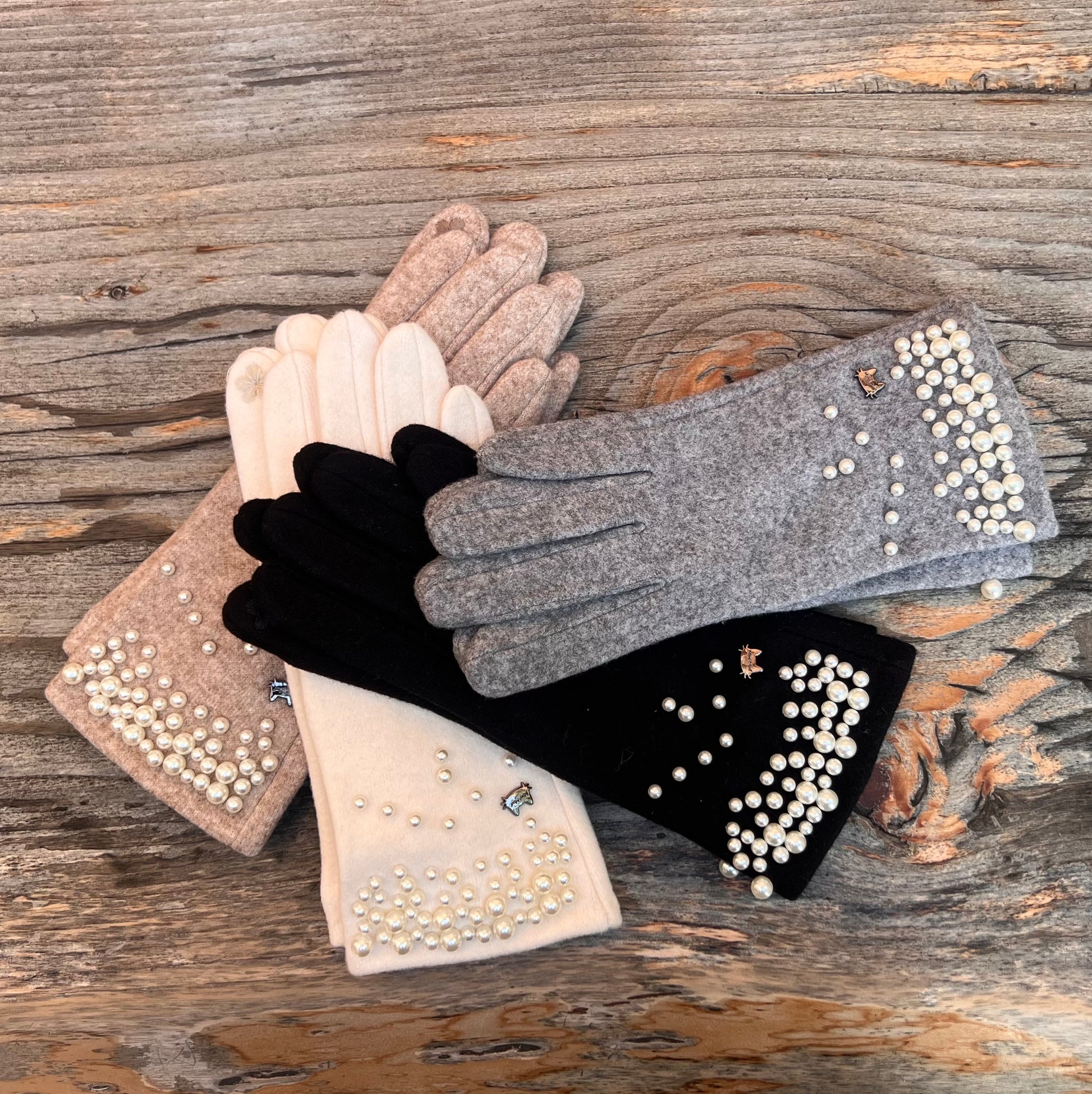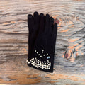 Guanti in calda e morbida microfibra con dettaglio perle disponibili Nero, Panna, Beige e Grigio