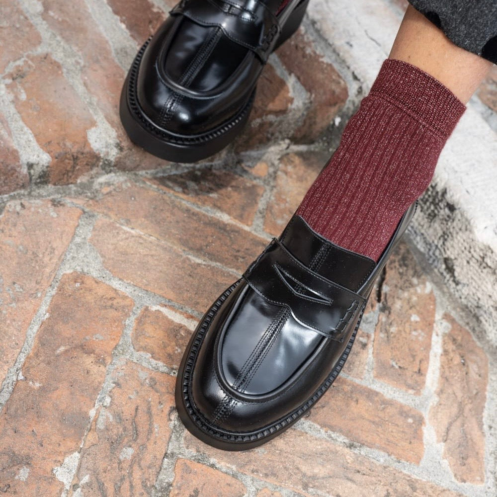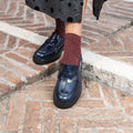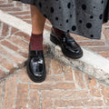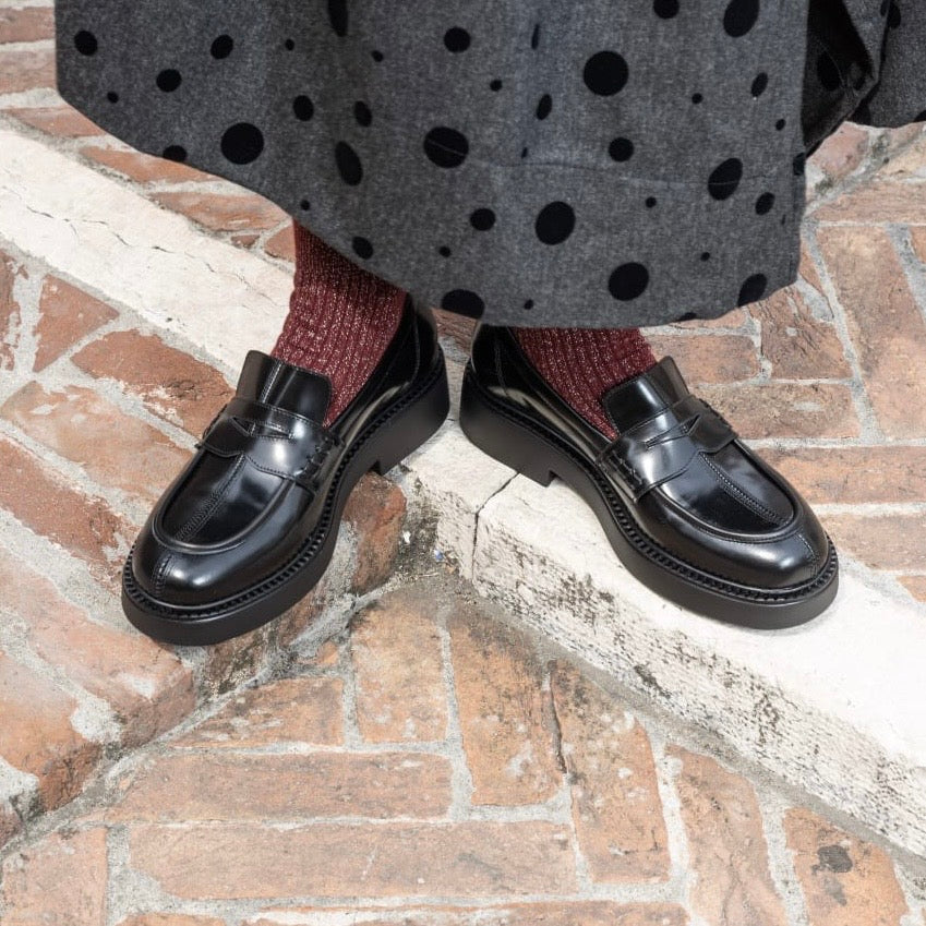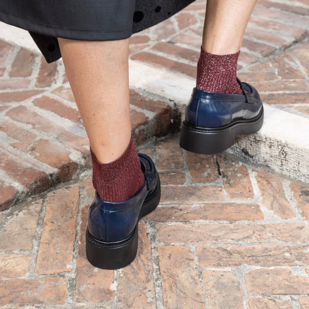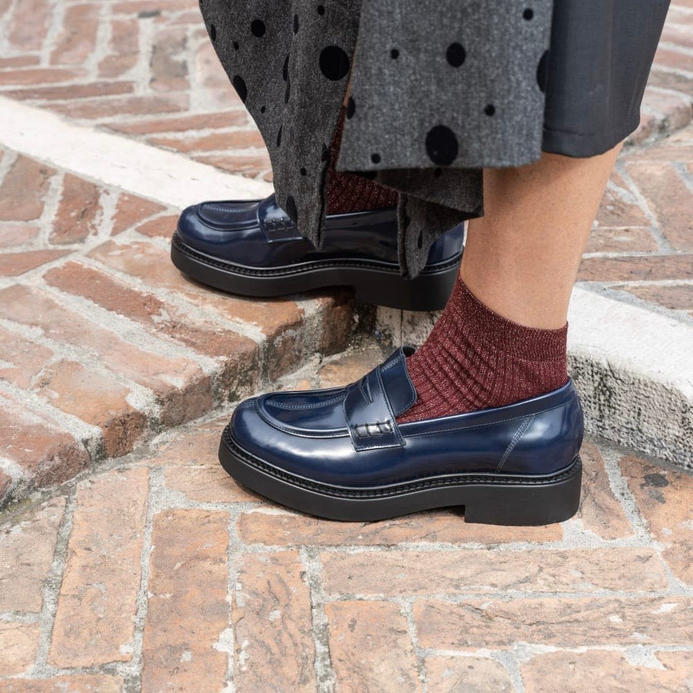 Mocassino a college con impugnatura a vista sulla tomaia realizzato in vitello spazzolato Nero e Blu