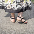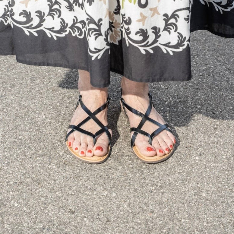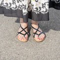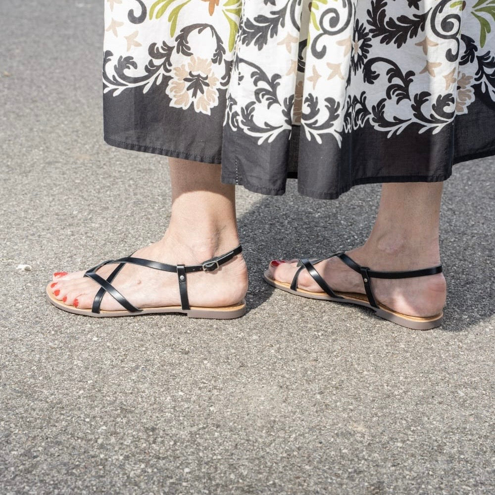 Sandalo infradito con listini in pelle incrociati disponibile Nero e Cuoio