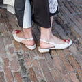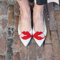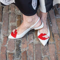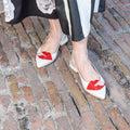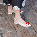 Slingback per chi ama distinguersi: base pelle nappa latte con dettaglio bocca in vernice rossa