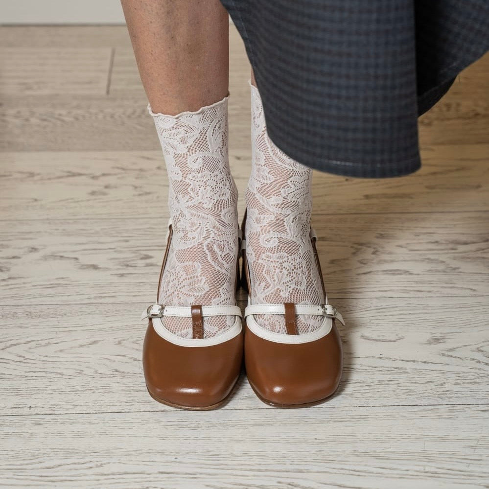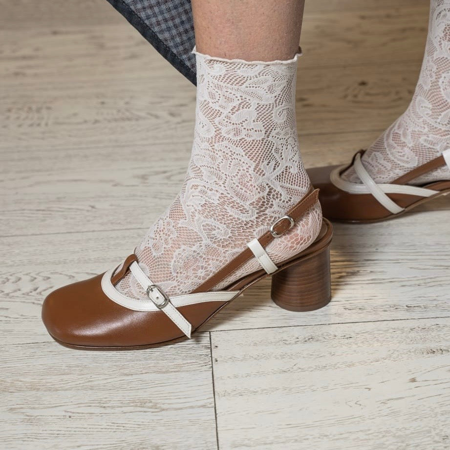 Tacco rotondo in cuoio 5,5 cm e fondo cuoio naturale