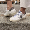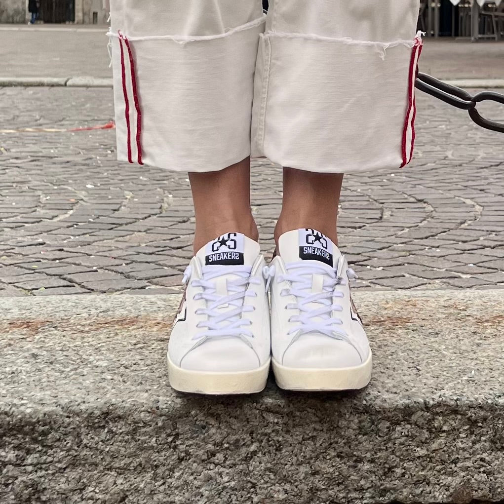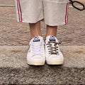Sneaker in morbida pelle con inserti in pelle camoscio maculato. Doppio laccio disponibile: bianco e maculato