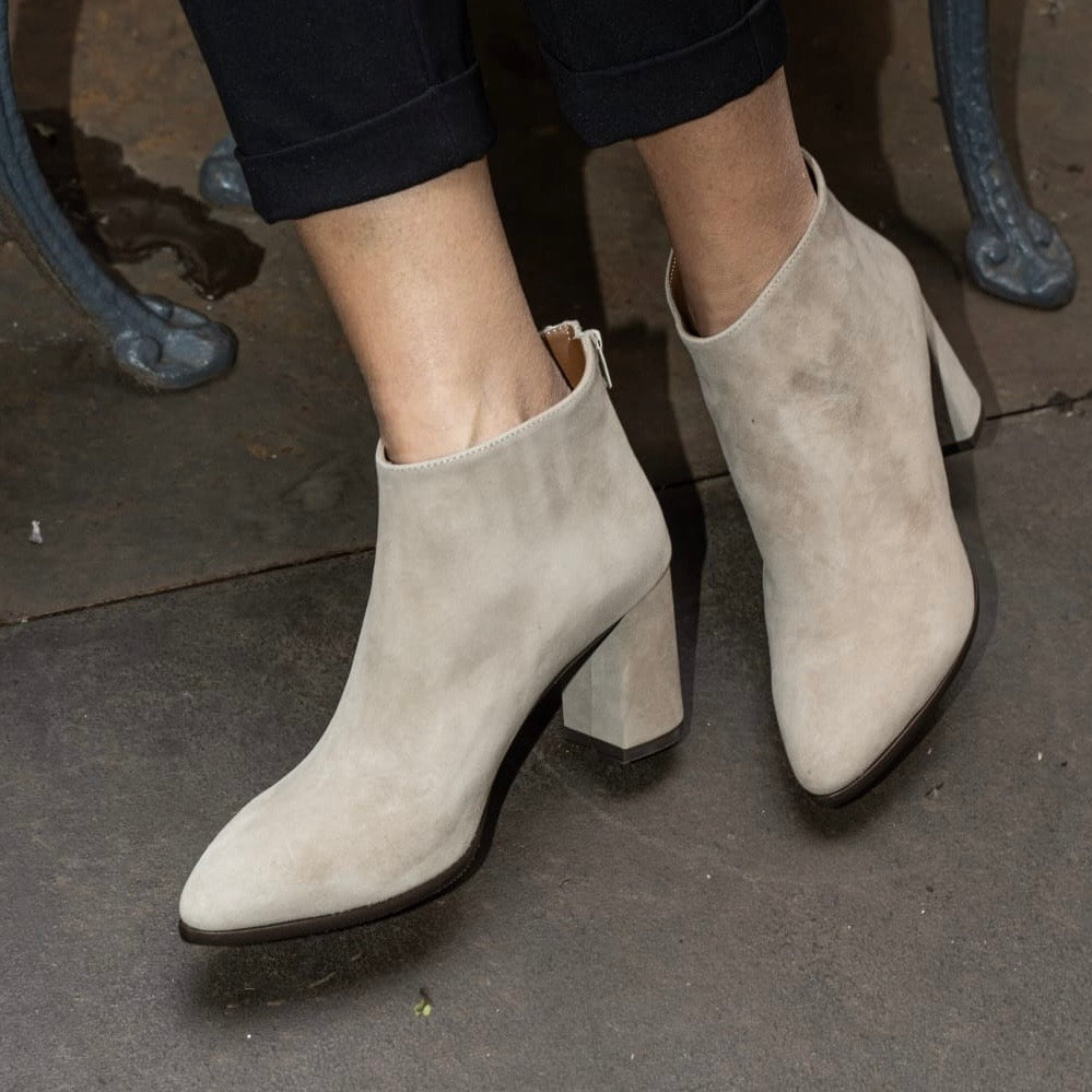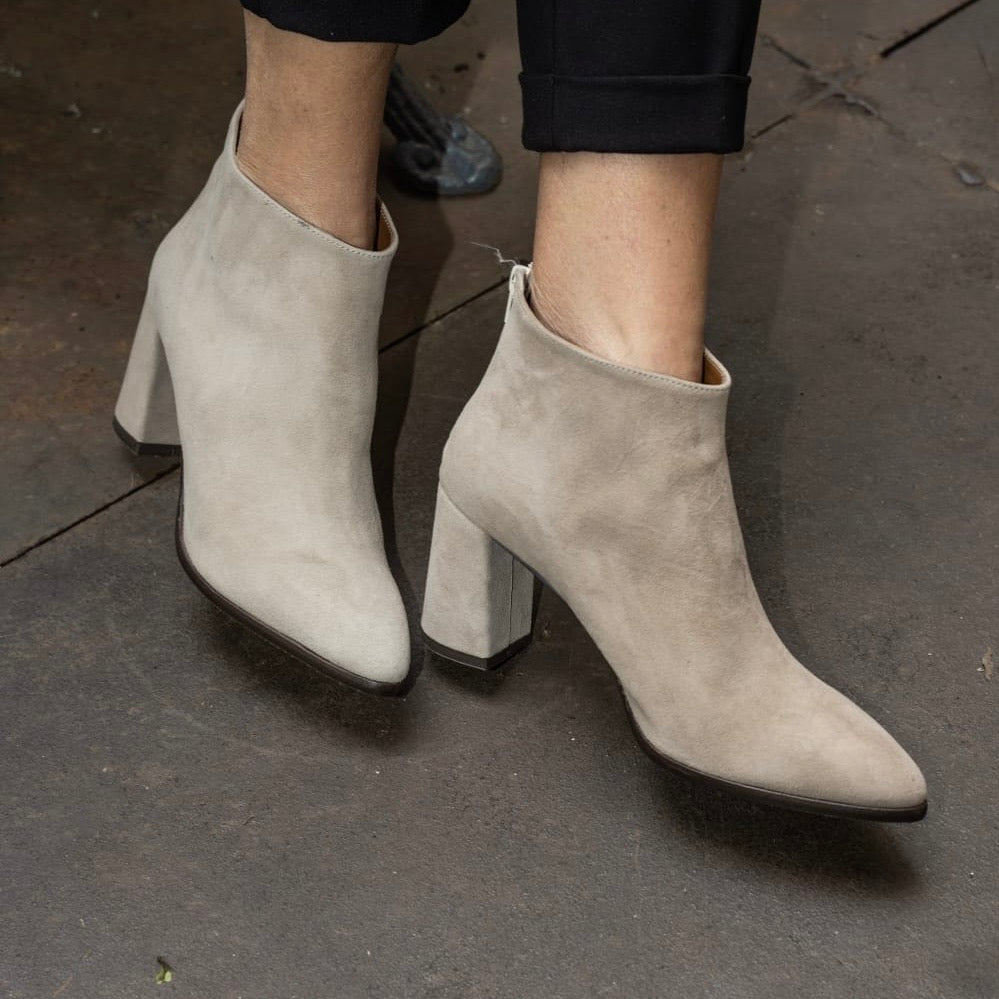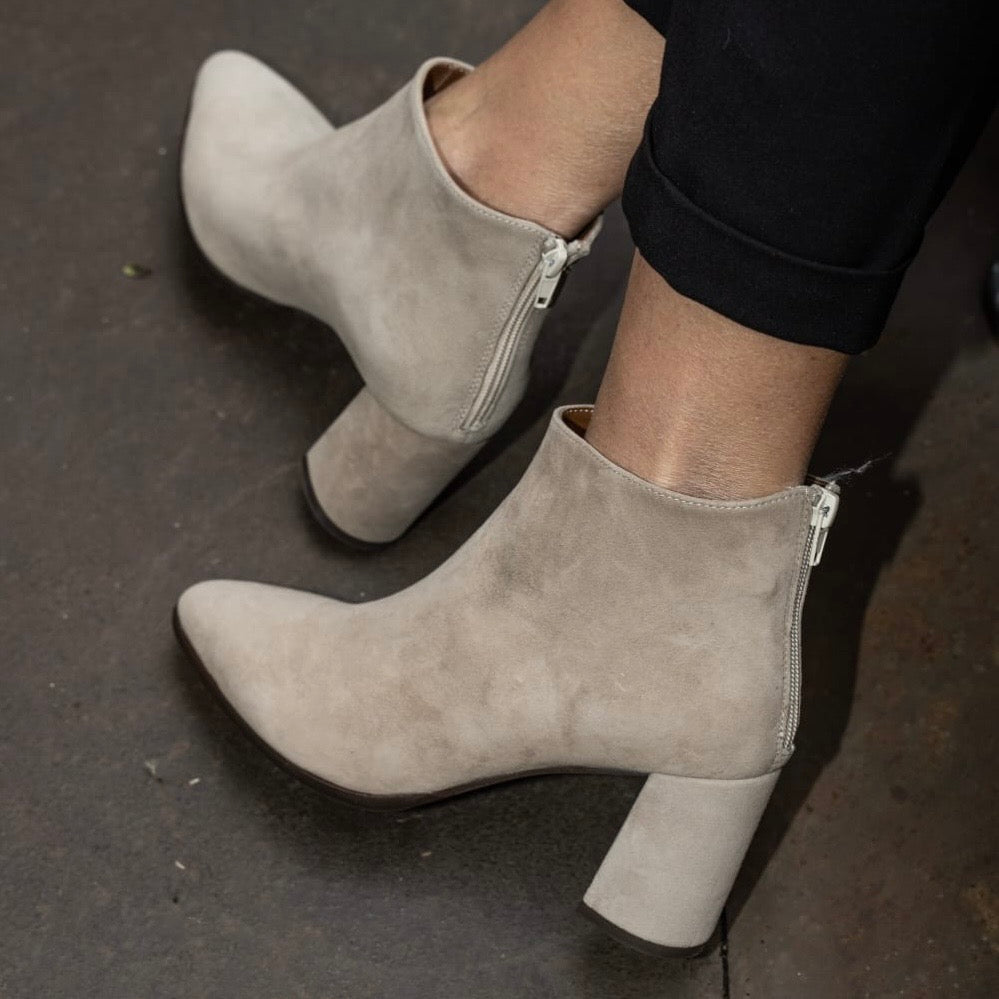 Stivaletto tronchetto alla caviglia con zip posteriore realizzato in camoscio beige-sabbia