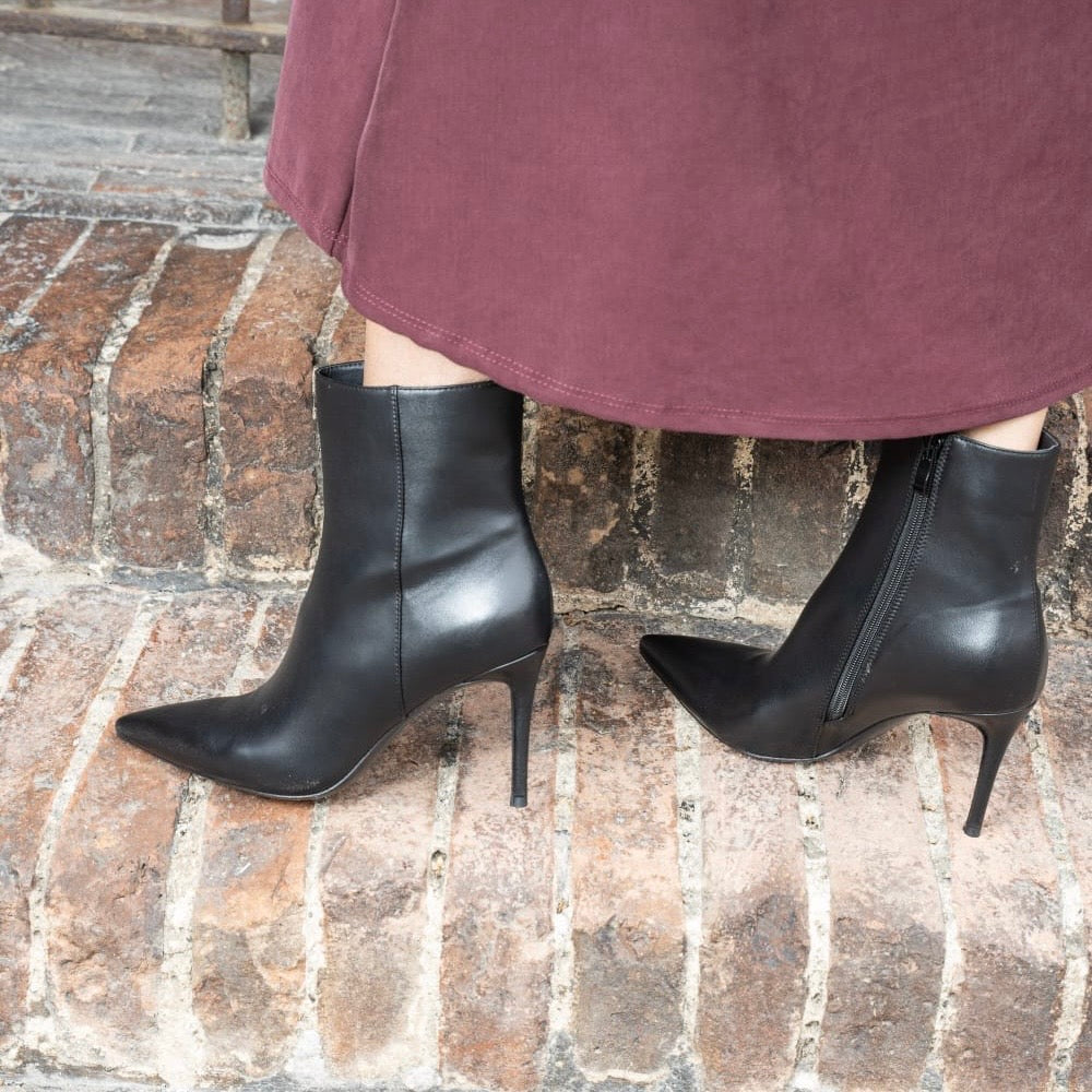 Stivaletto iper femminile realizzato in morbida pelle ecologica con full zip