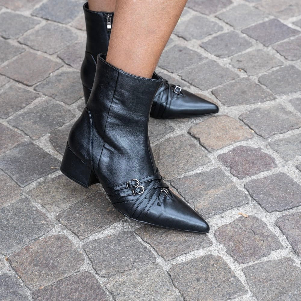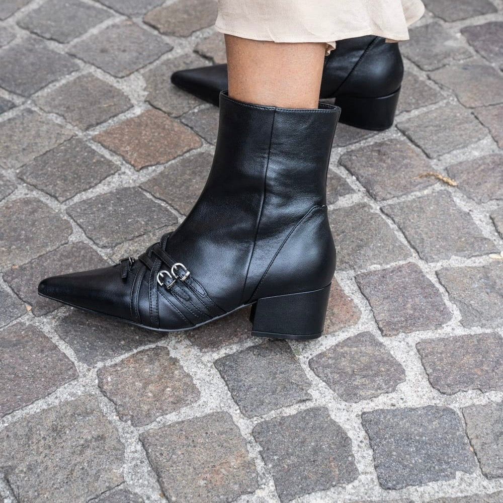 Stivaletto audace per dare carattere anche agli outfits più basici con multi-listini sulla tomaia realizzato in nappa nera