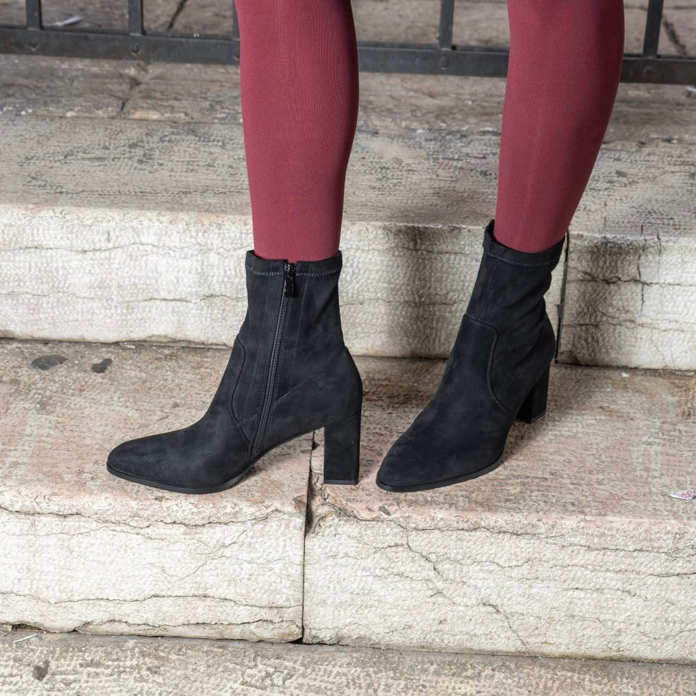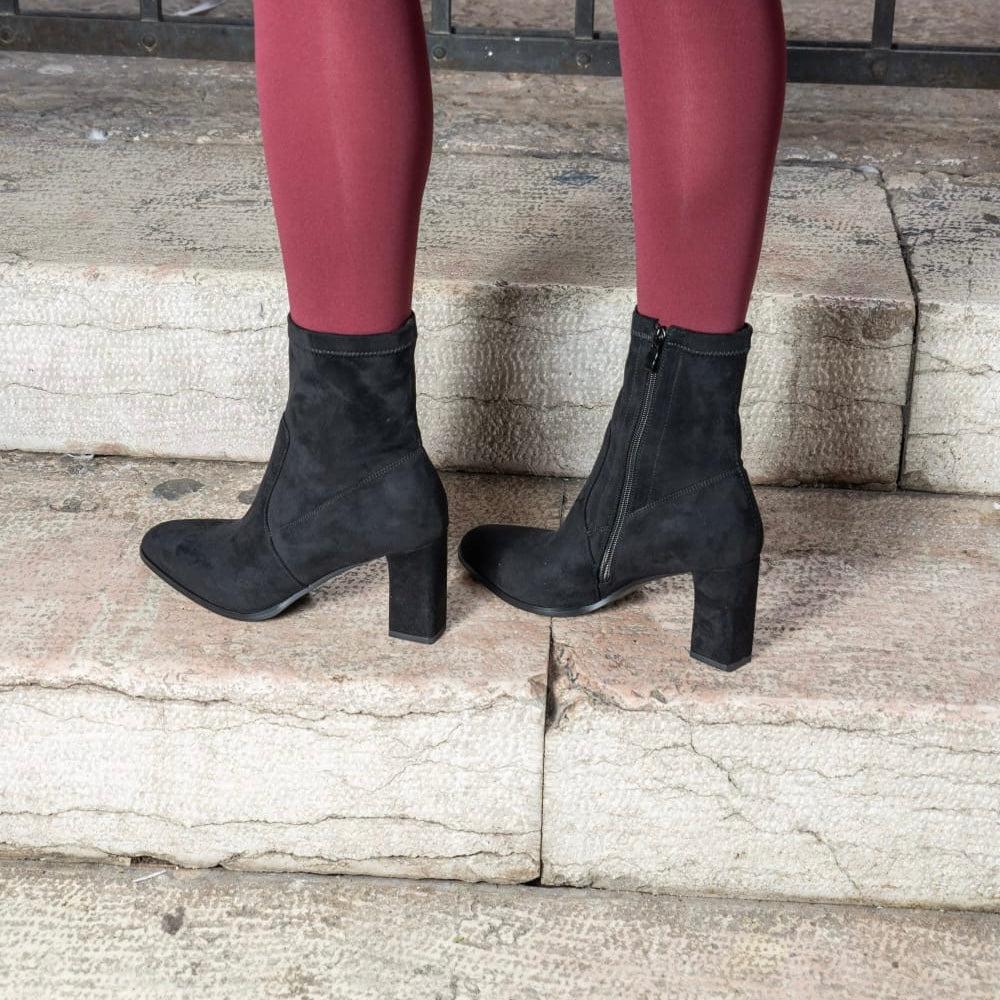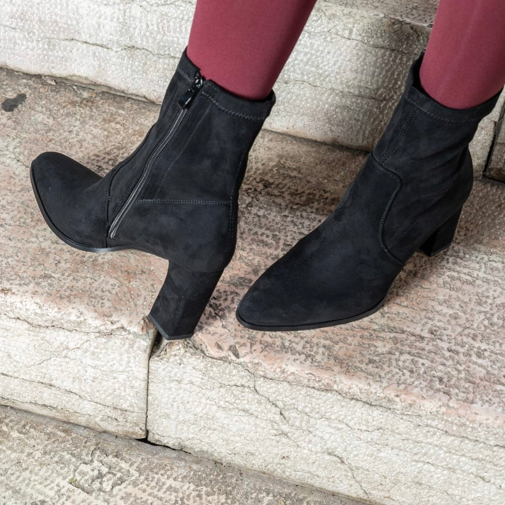 Stivaletto full zip in tessuto elasticizzato effetto camoscio.Adatto anche a caviglie importanti