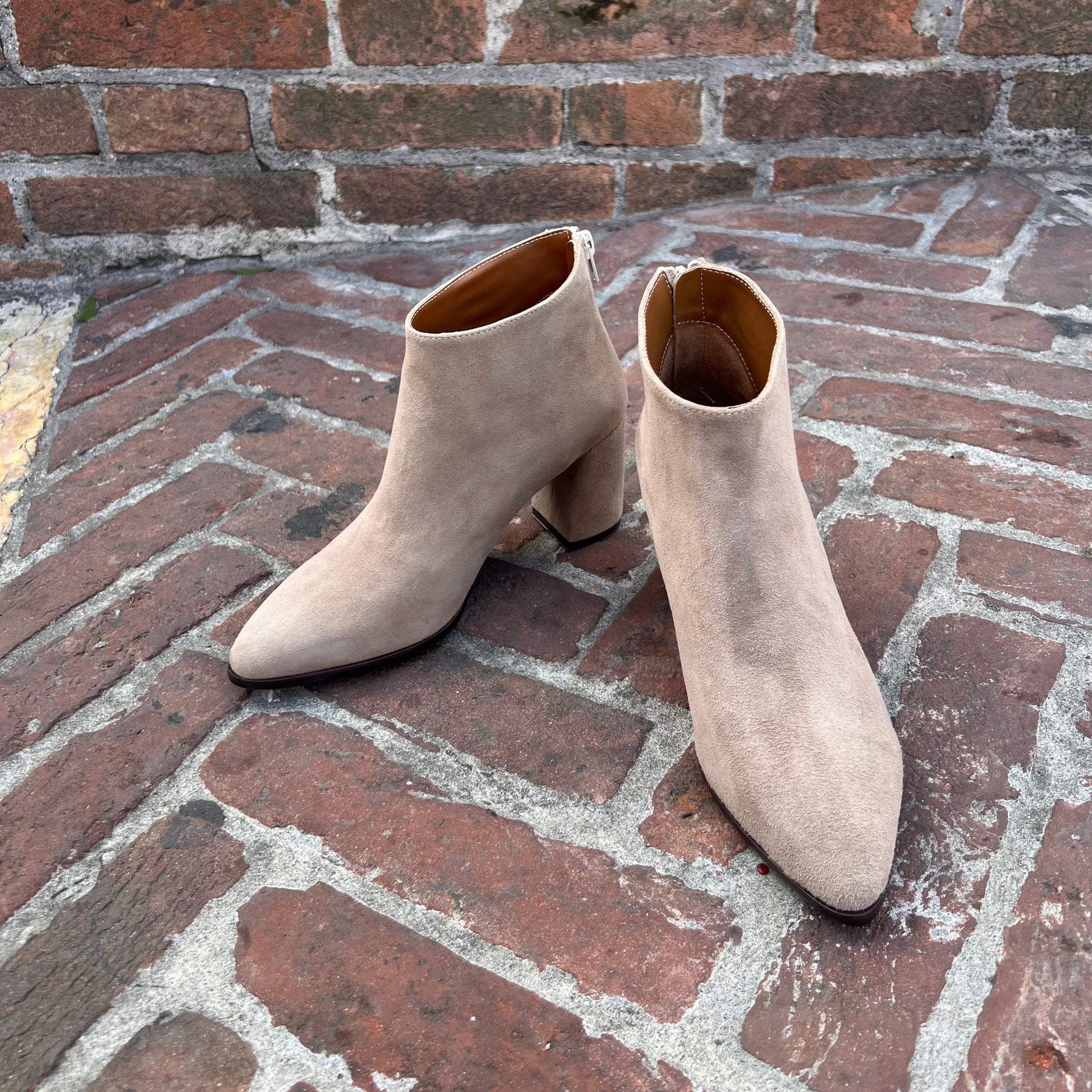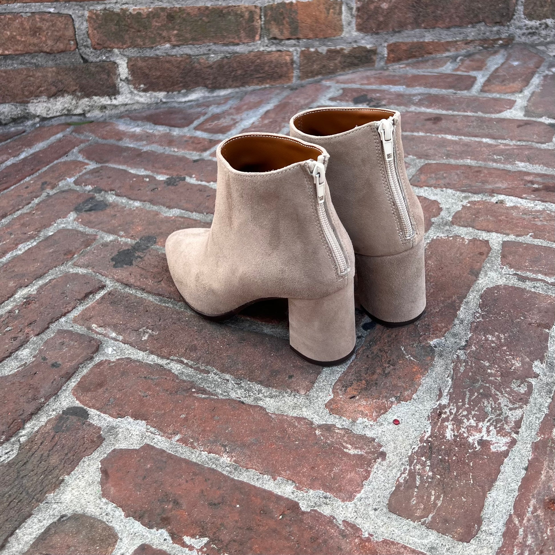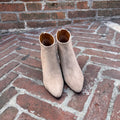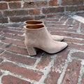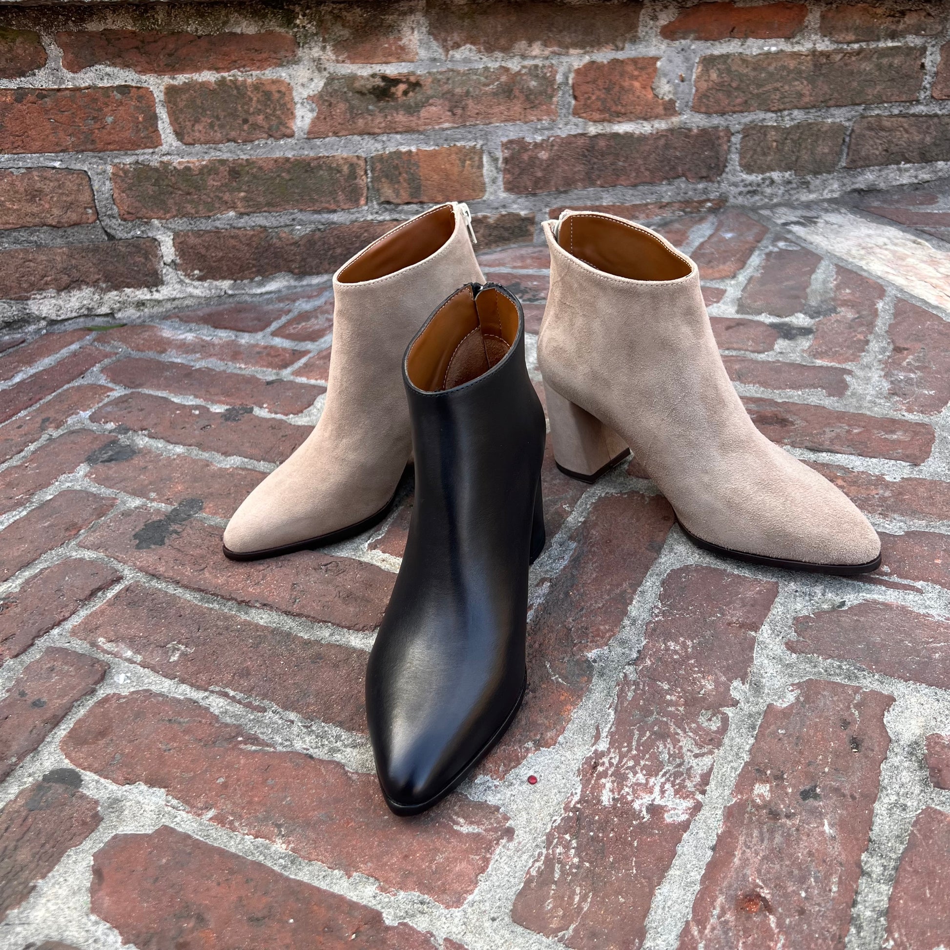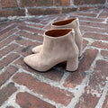 Stivaletto tronchetto alla caviglia con zip posteriore realizzato in vitello nero e camoscio beige-sabbia