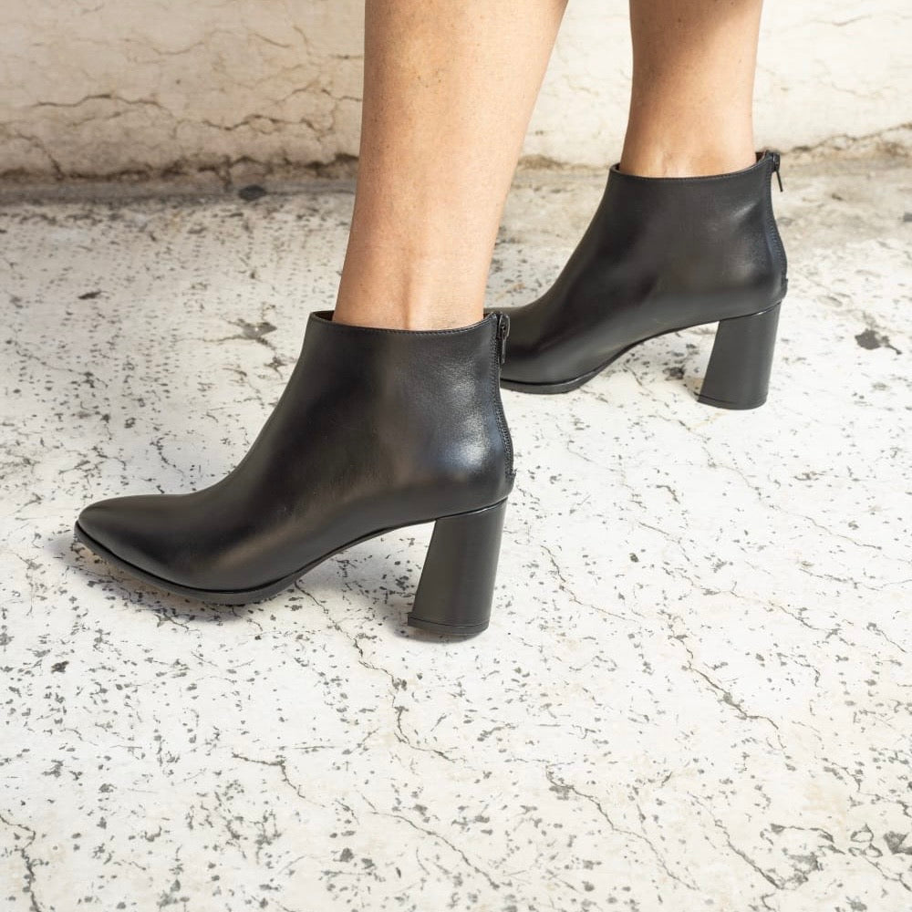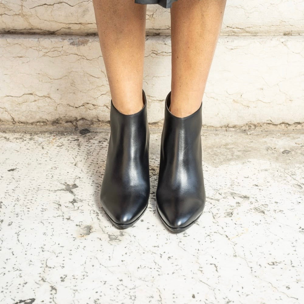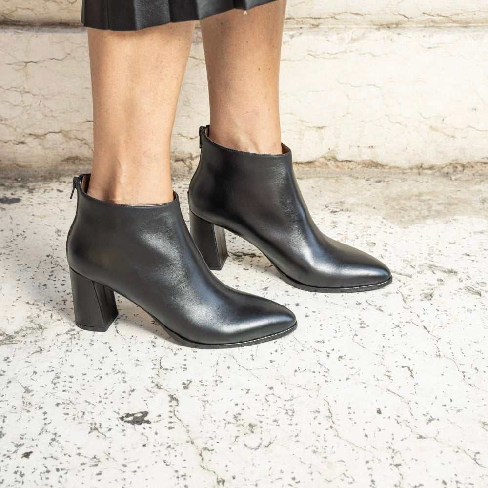 Stivaletto tronchetto alla caviglia con zip posteriore realizzato in vitello nero