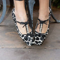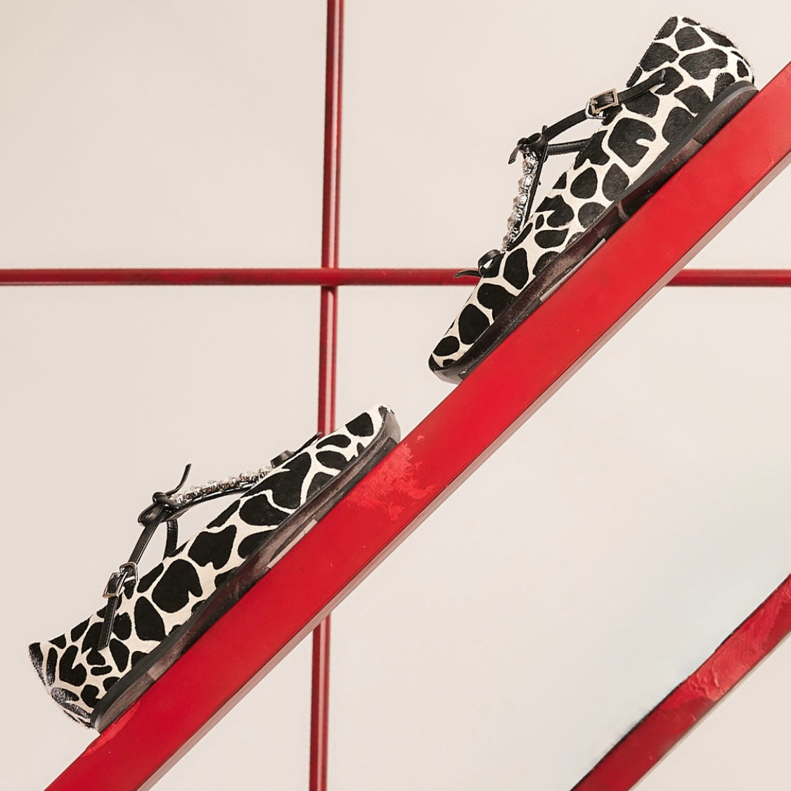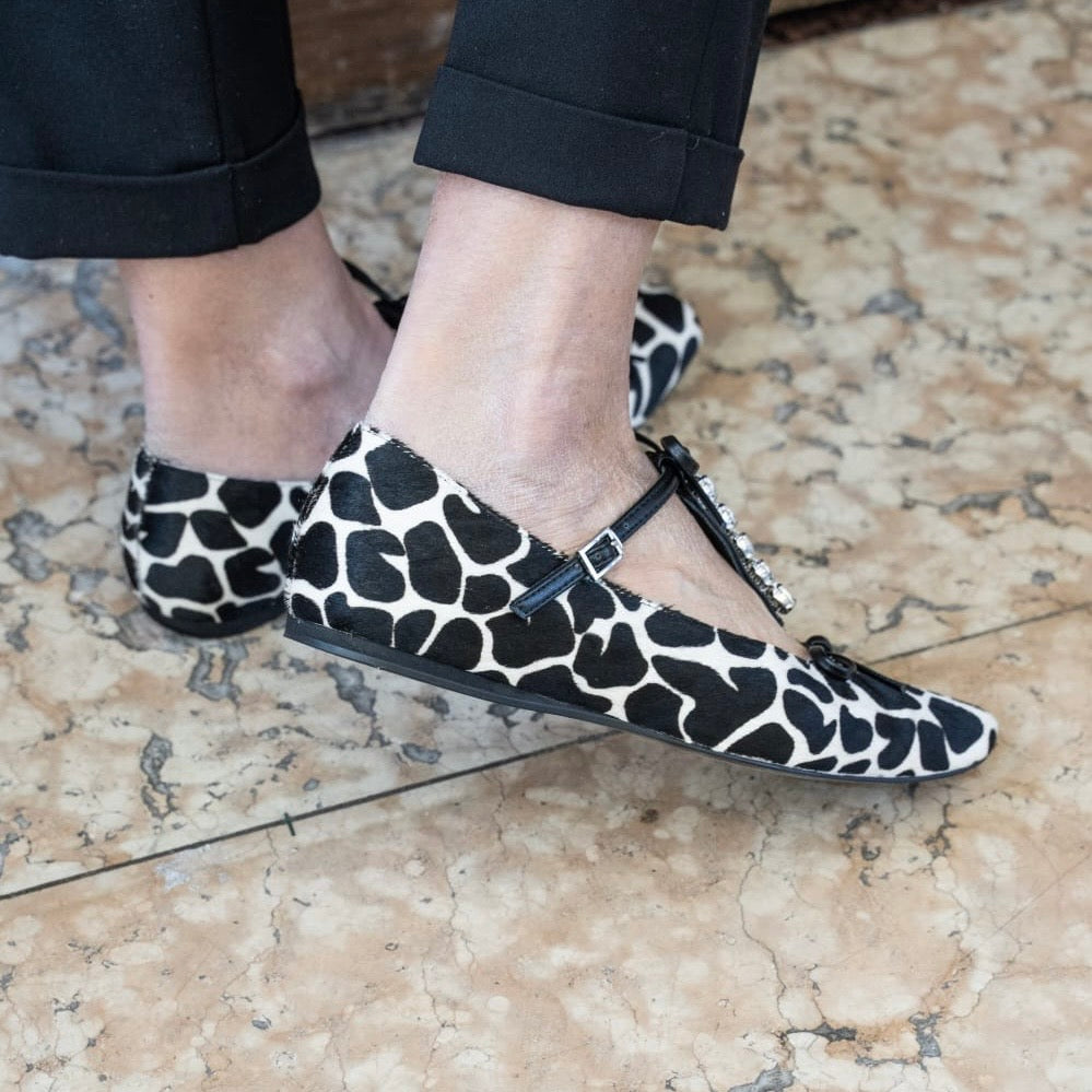 T-bar romantica e grintosa in cavallino giraffa bianco e nero con dettaglio zirconi sul cinturino