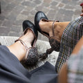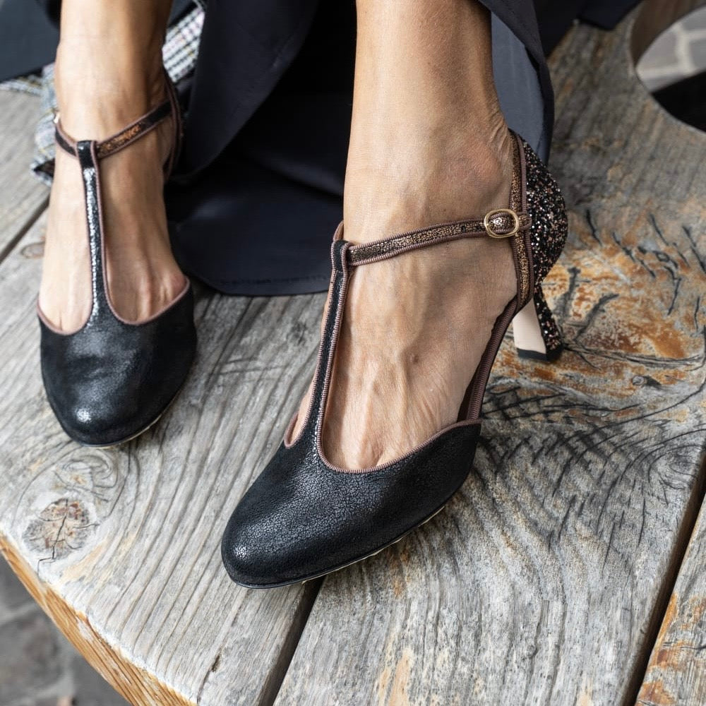 Tacco stabile a rocchetto 6 cm e fondo cuoio con mezza pianta gomma