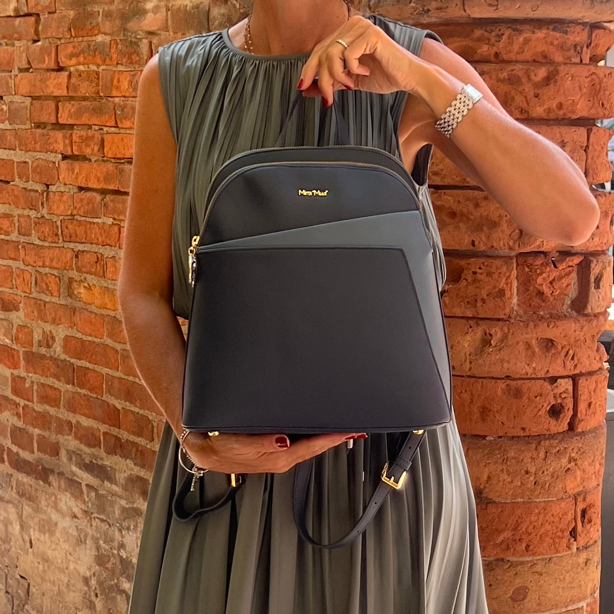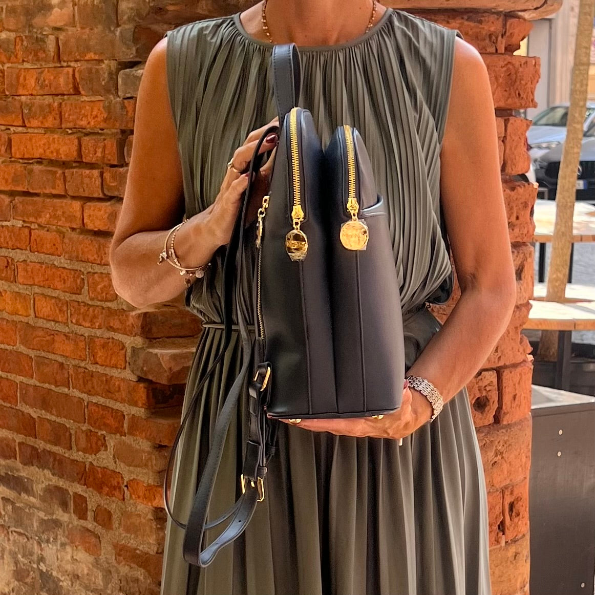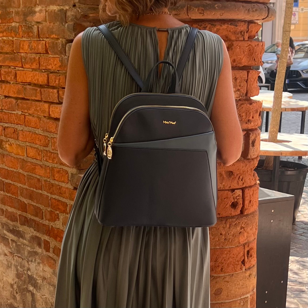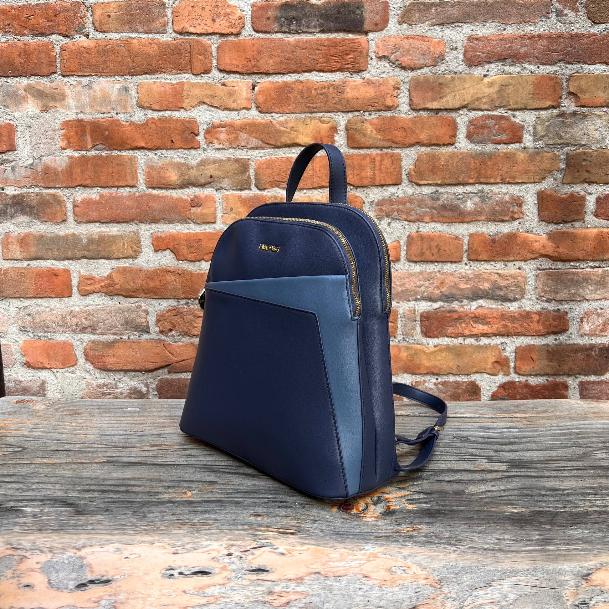 Zaino doppio scomparto con spallacci regolabili e maniglia in bicolore Blu+Celeste